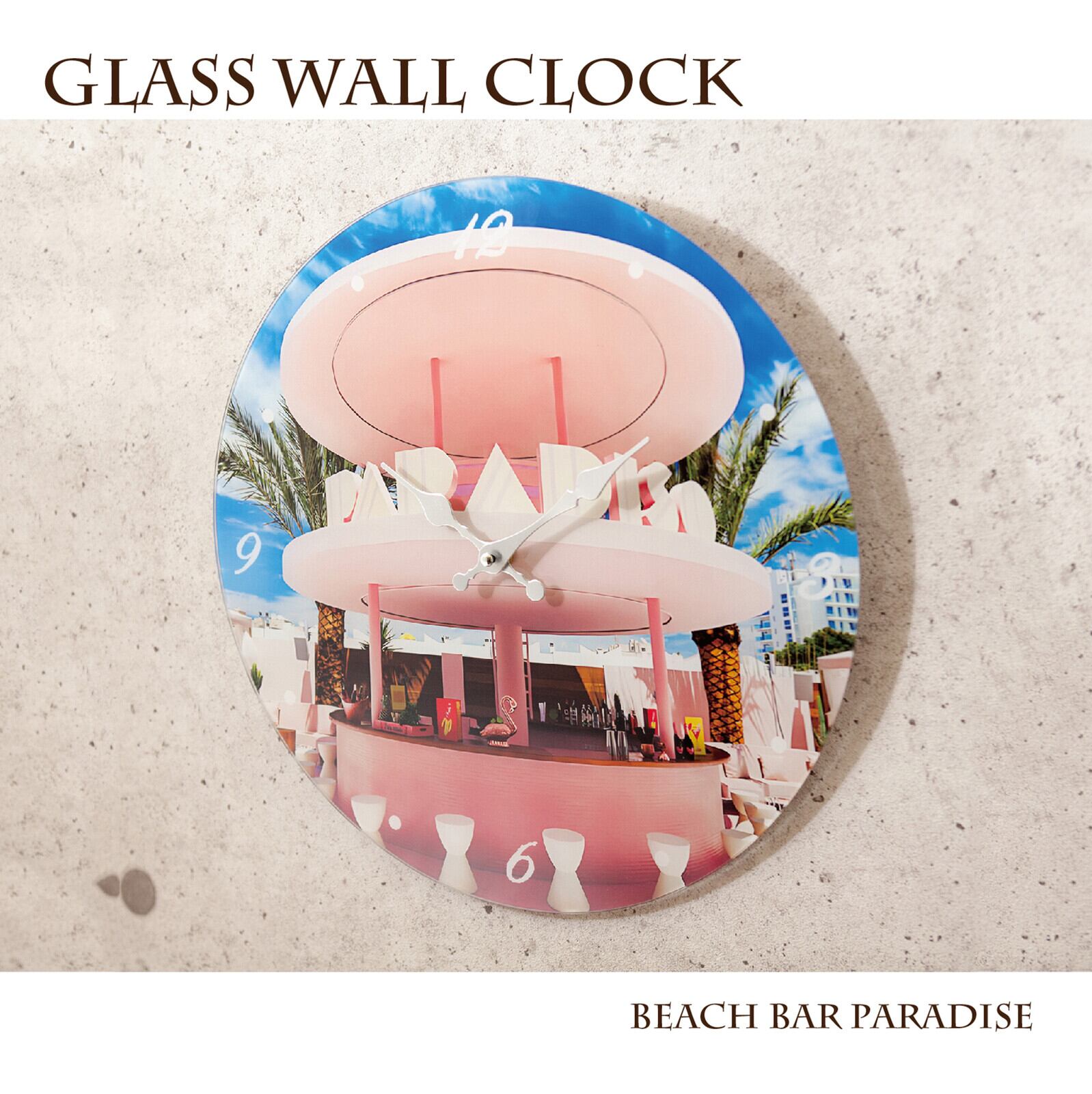 【掛時計】ガラスウォールクロック[Beach Bar PARADISE](Φ38)