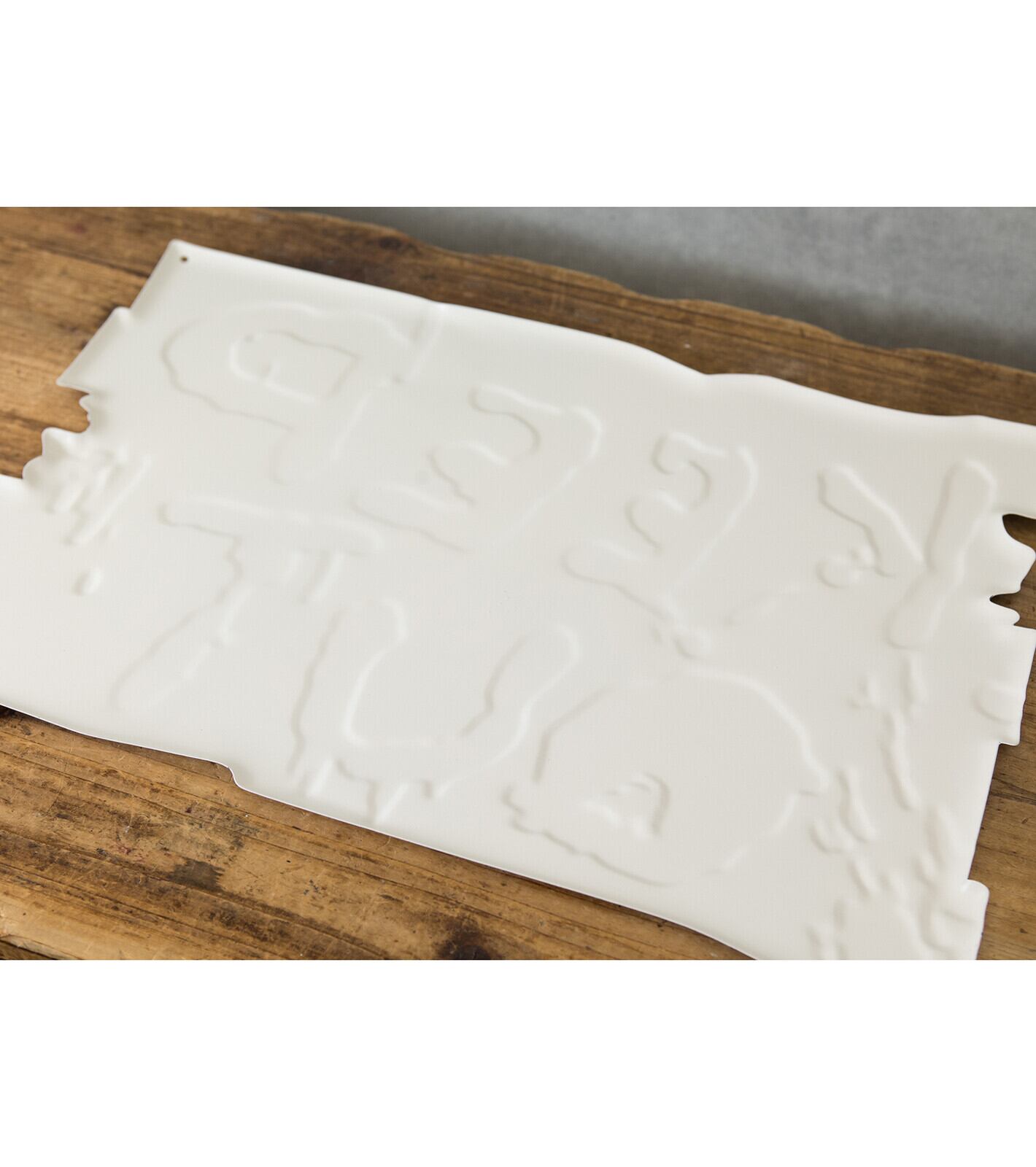 オシャレなデザインにエンボス加工を施されたプレートです。