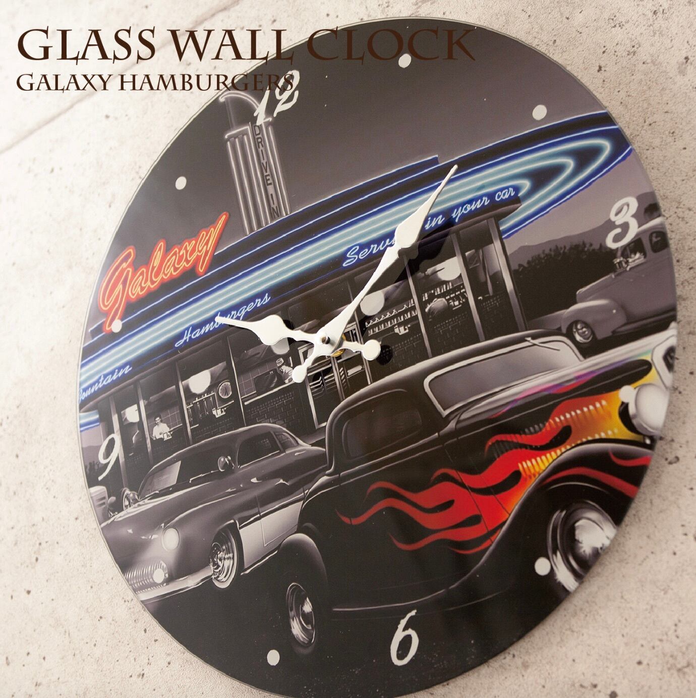 【掛時計】ガラスウォールクロック[Galaxy Hamburgers](Φ38)